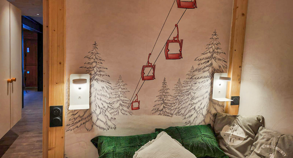 Coin montagne avec 2 lits simples superposés + lit tiroir pour enfant